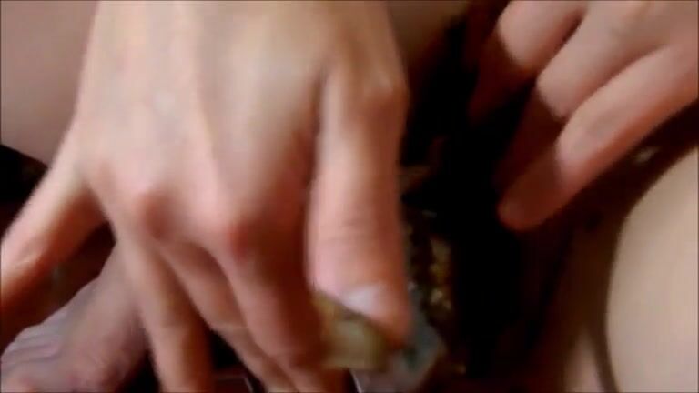 Chick masturbating with can shitting and taste it