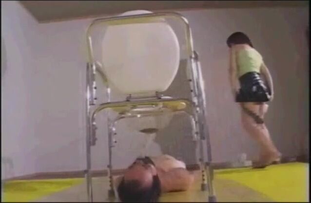 Slave gets fed a shitty expulsion through a special toilet bowl
