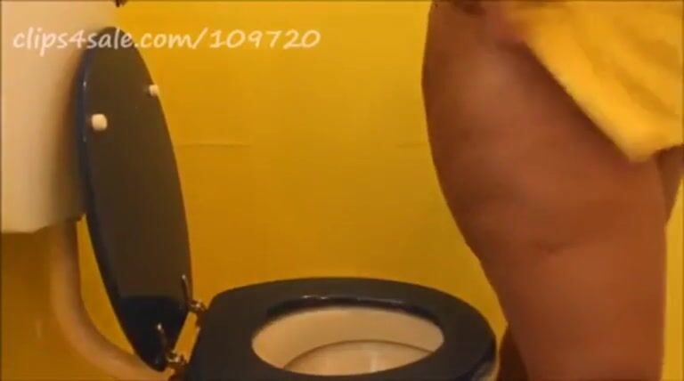 Ebony milf in yellow dress pooping in toilet
