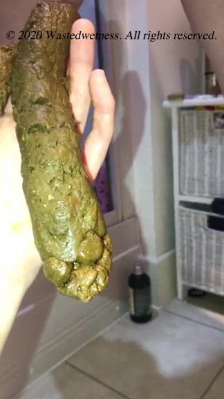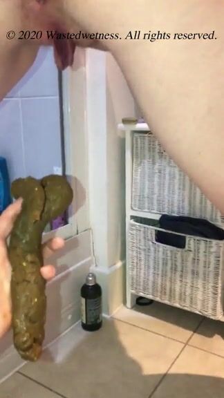 Lady taking out long poop train