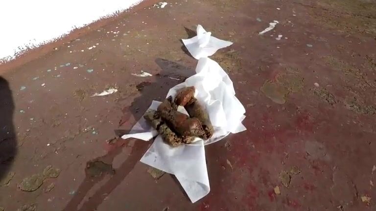 Babe shitting on old boat