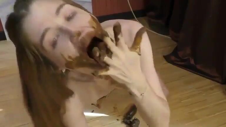 Cute teen brunette babe smearing and shit licking