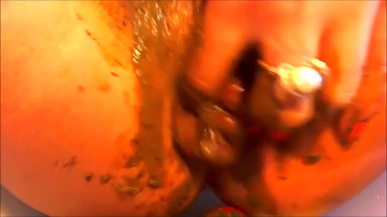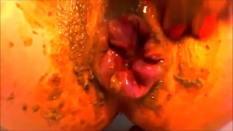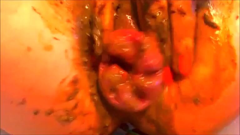Crazy girl smearing shit while ass fingering