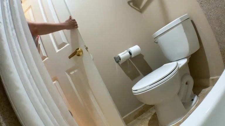 Thick blonde milf poops in the toilet
