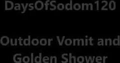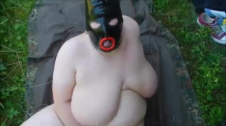 Masked busty lady sucking dirty cock in the grass