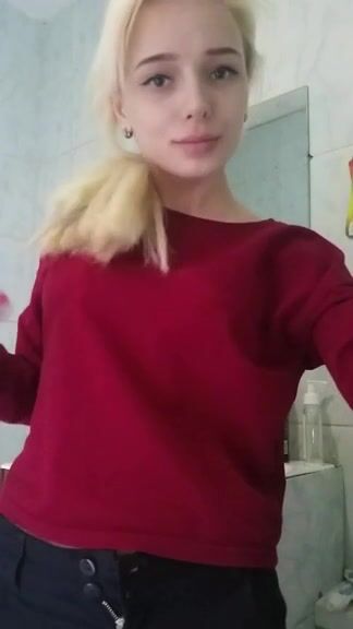 Skinny blonde teeny girl pooping