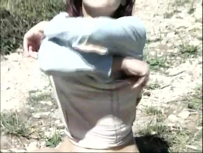 Brunette girl poop on the rock