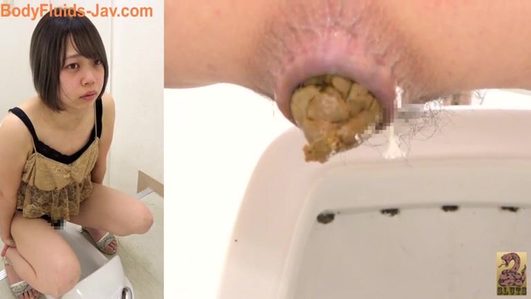 Cute brunette Japanese girl pooping yellow turd