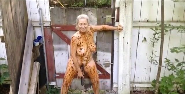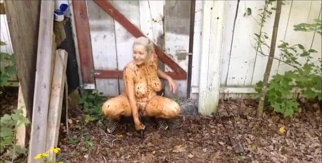 British nasty blonde covers herself in her shit