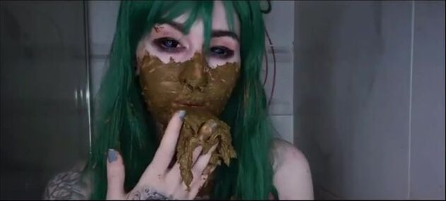 Pretty punk slut smearing shit on her ass