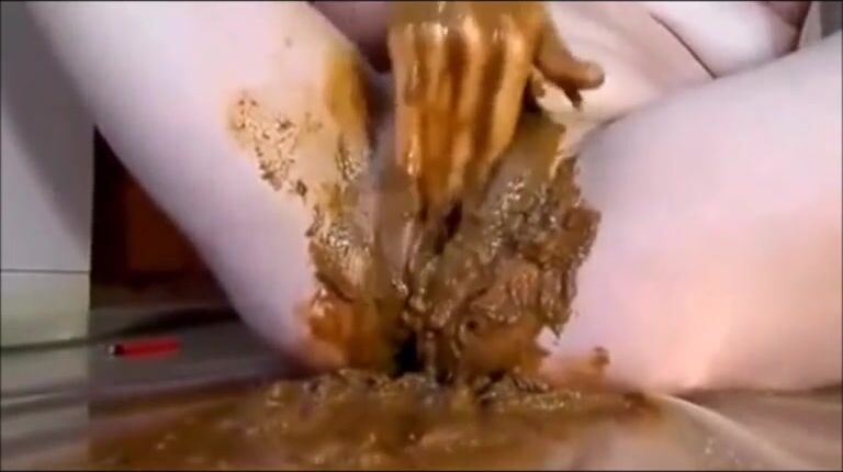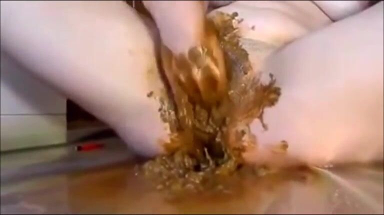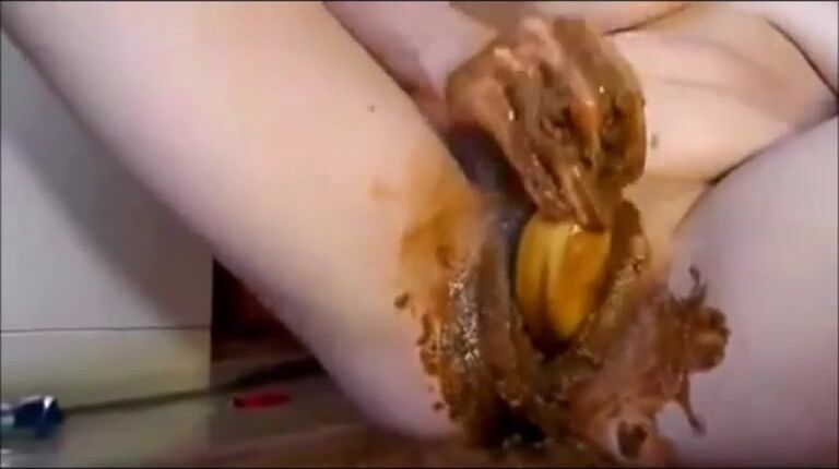 Girl masturbating and fisting pussy with shit